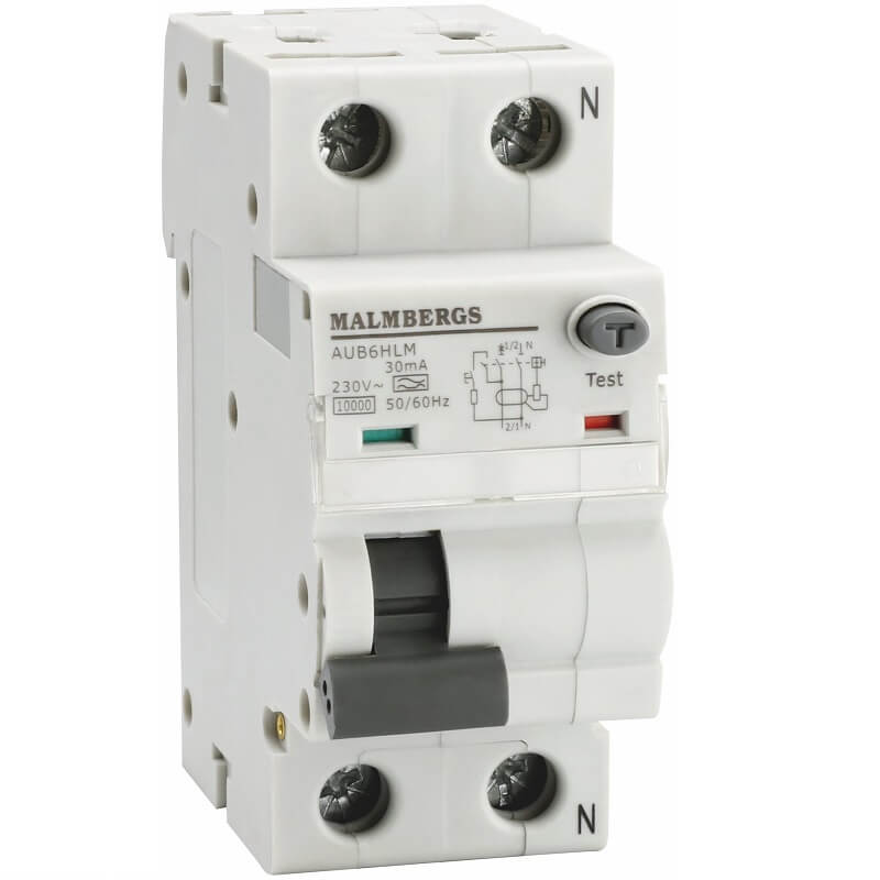 Kombirelæ C 6 Amp, 1P+N, HPFI | Type A | 30mA | nul højre side